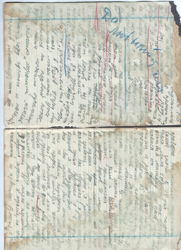 …работаю [неразборчиво] на фабрике… кормят [неразборчиво] мало… здоровье [неразборчиво] спасибо…
